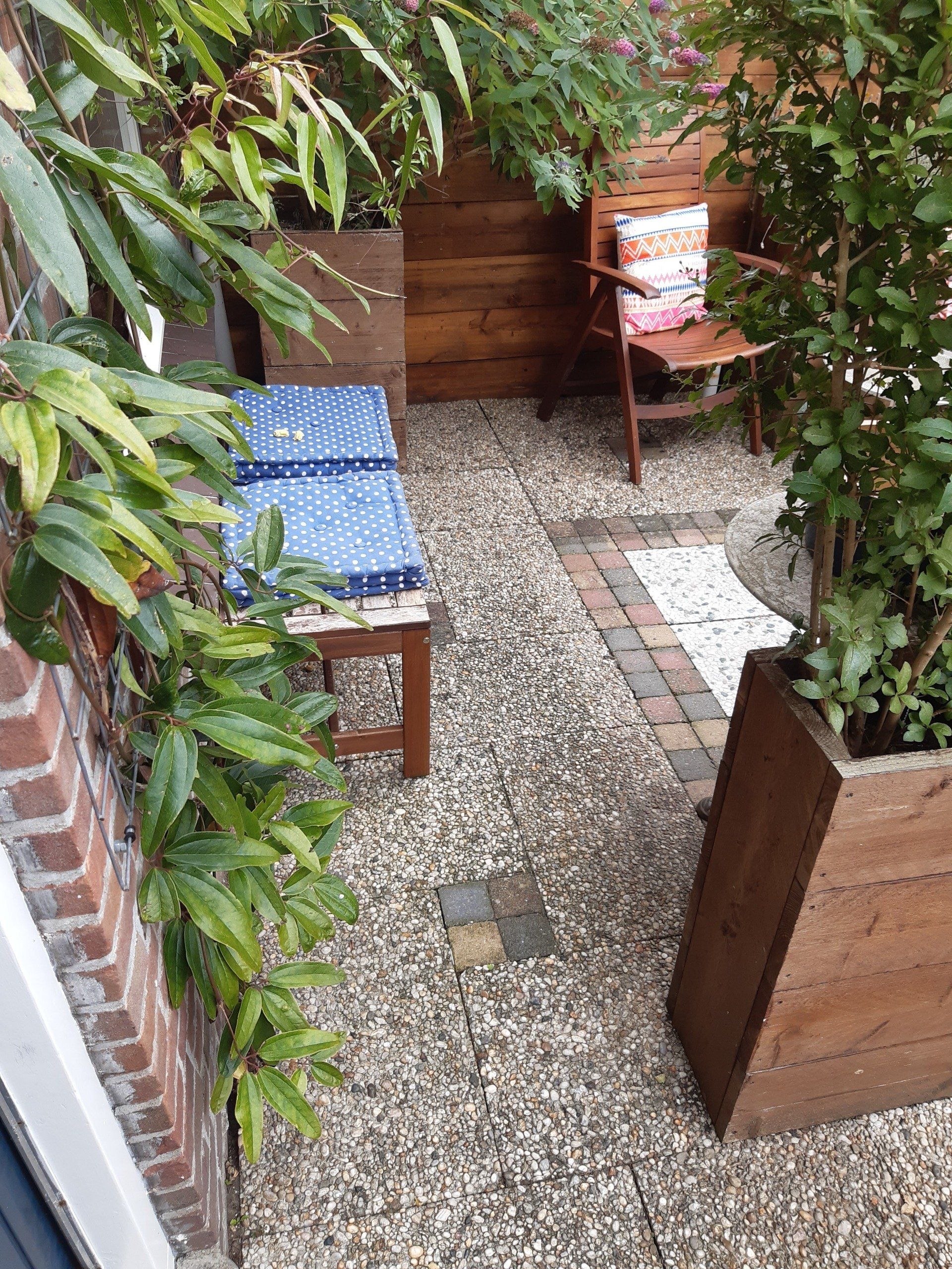 Mijn tuin is klein, maar wel de mooiste van de straat. Het voelt alsof de zon er elke dag schijnt.